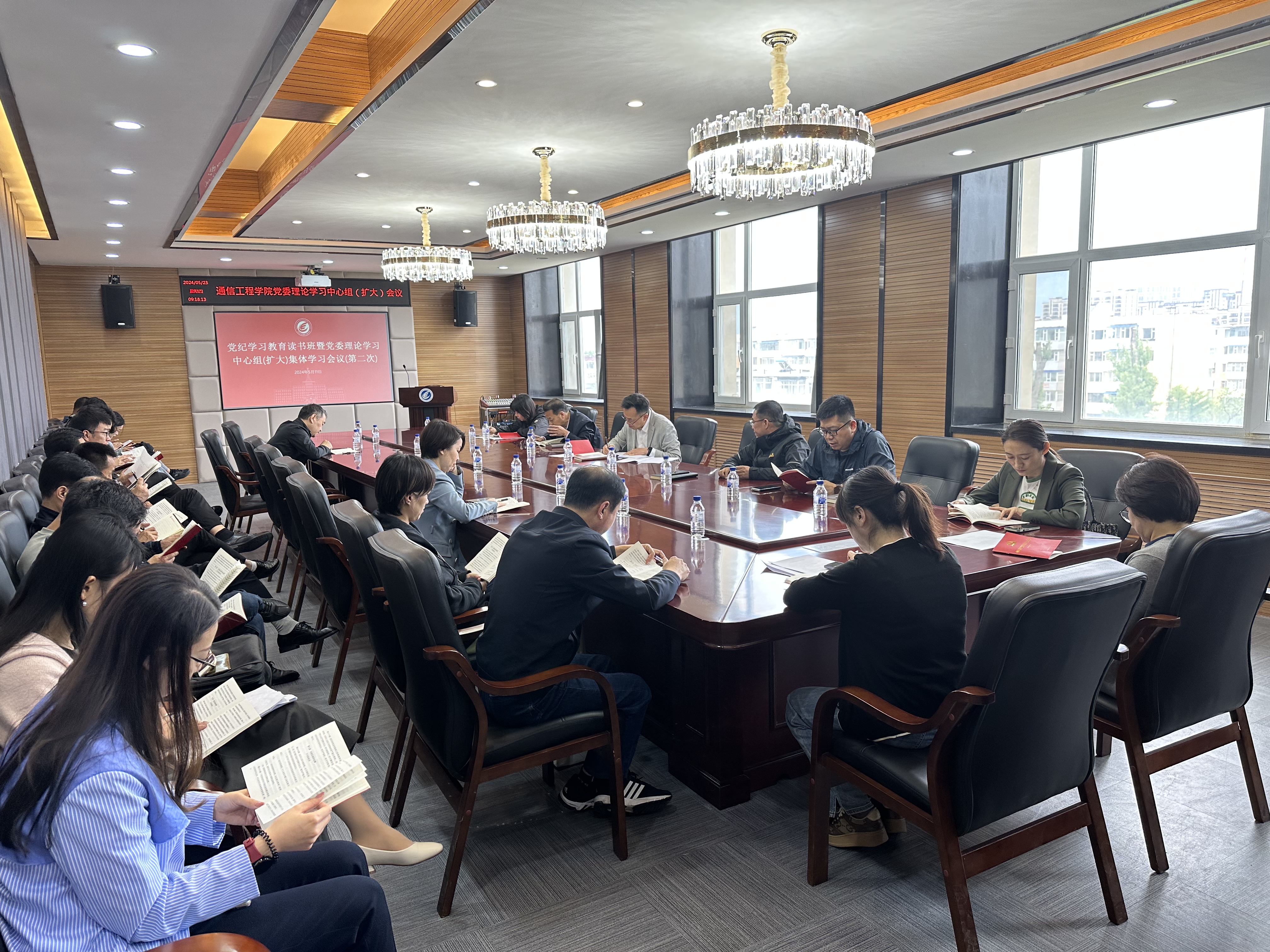 党委在南湖校区508会议室,召开了党纪学习教育读书班暨党委理论学习中心组(扩大)集体学习会议(第二期)。领导班子成员、党委委员、纪委委员、党支部书记和机关工作人员参加会议。会议由党委书记董宏志主持。