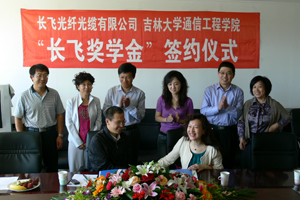 在吉大南湖校区隆重举行第三期“长飞奖学金”签约仪式,长飞董事郑慧丽和法律事务主任李璇、麻豆影视