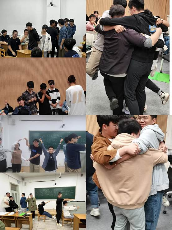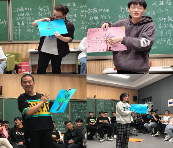 The activity consisted of five sessions. First, the postgraduate student peer counselor, Chen Siyu, introduced the theme, goals and expected time of the activity. Then came the “One-Minute Applause” session, and the activity was formally kicked off with the applause of the freshmen. Then the transition session, the “Trust Journey”, followed, in which the “blind” students and the “guiding students cooperated well and learned to trust others. In the “Collective Landing” and “Human Alphabet” sessions, each student gave full play to his or her imagination, testing the wisdom and the cooperation spirit of a team. The two sessions brought the activity to the climax and greatly enhanced team cohesion. In the session of “Passing on Happiness”, each participant actively discovered the strengths and merits of others, and also got to know themselves and evaluated themselves better with the help of the team. At the end of the activity, each group of students worked together to draw a “Group Tree”. The group members gave advice and suggestions to the group tree, created delicate pieces, and shared their creative ideas with other students. Finally, the students took a group photo and ended the activity with the song “A Loving Family”.