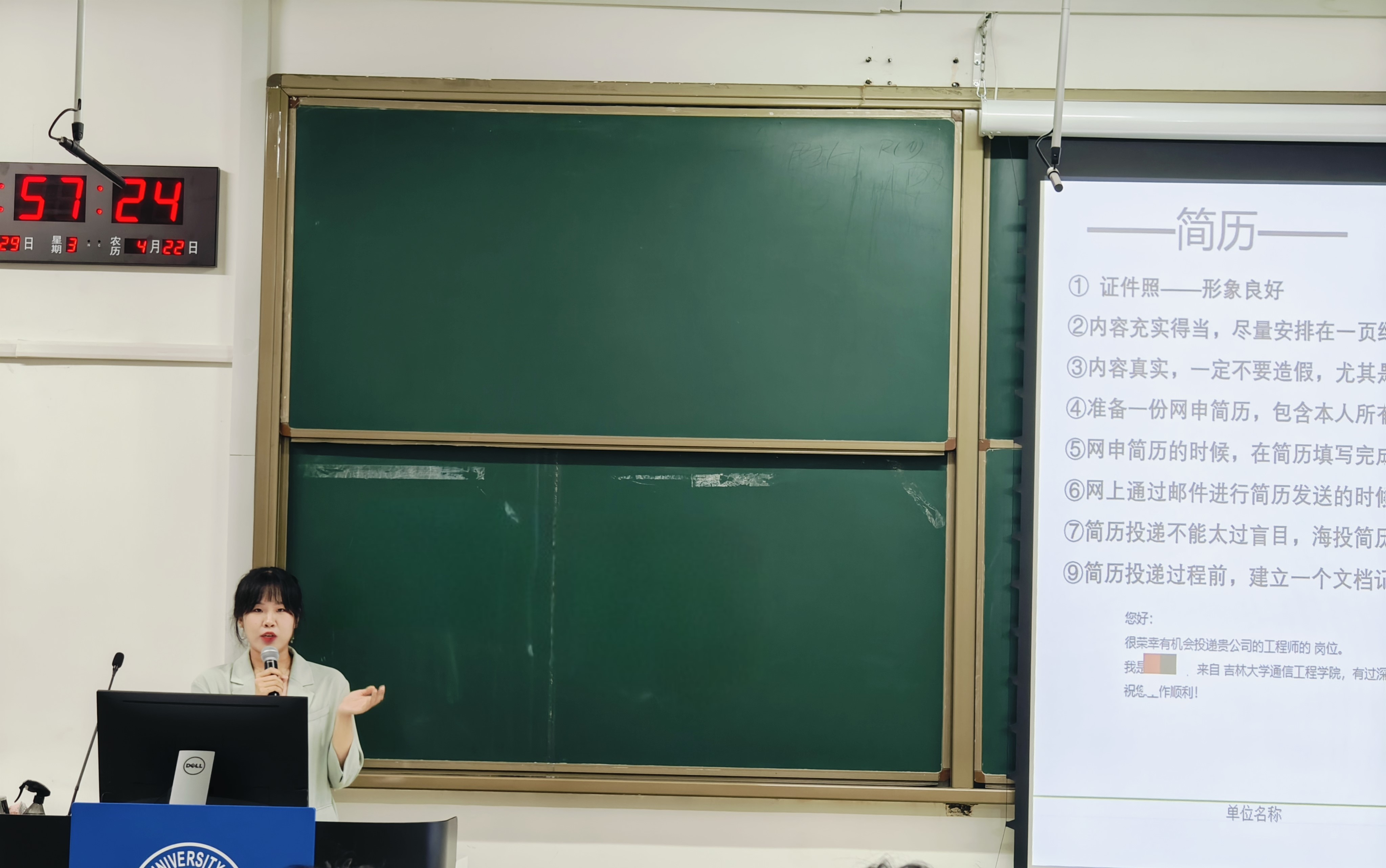 首先,主持人介绍了就业分享会的主旨是帮助在校生更好地了解当前就业形势,掌握求职技巧,提高就业竞争力。随后,嘉宾们依次带来了他们的求职经历和感悟。马云博详细介绍了各种面试流程,包括国家电网的面试流程和提前批的流程。他的分享内容丰富且具体,为同学们提供了非常实用的指导。吕若洲主要介绍了选调的流程和经验,他分享了自己在选调过程中的心得体会,为有意向参与选调的同学提供了宝贵的建议。于嘉鑫介绍了他在求职过程中如何确定地域、调研的过程以及面试经验。他还详细介绍了秋招和春招的流程,帮助同学们更好地规划求职时间。陈思妤则着重讲解了简历的撰写技巧,提供了一些获取信息的途径,帮助同学们更好地准备求职材料。倪宏坤主要介绍了他在电网的面试经历以及一些国企和研究生的笔试面试经历。他还分享了一些福利政策等实用信息,为同学们提供了全面的就业参考。