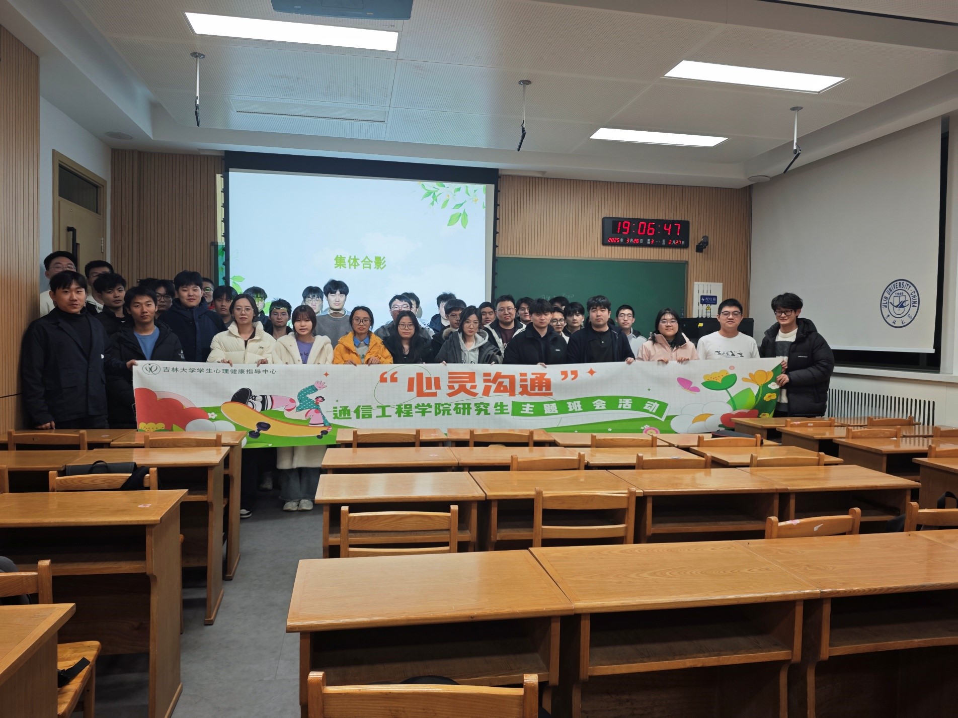 分别于3月26日、27日于南岭校区逸夫楼B112室和南湖校区第八阶梯教室开展了“心灵沟通”主题班会活动,班会由心理委员主持,参会对象为2024级研究生。