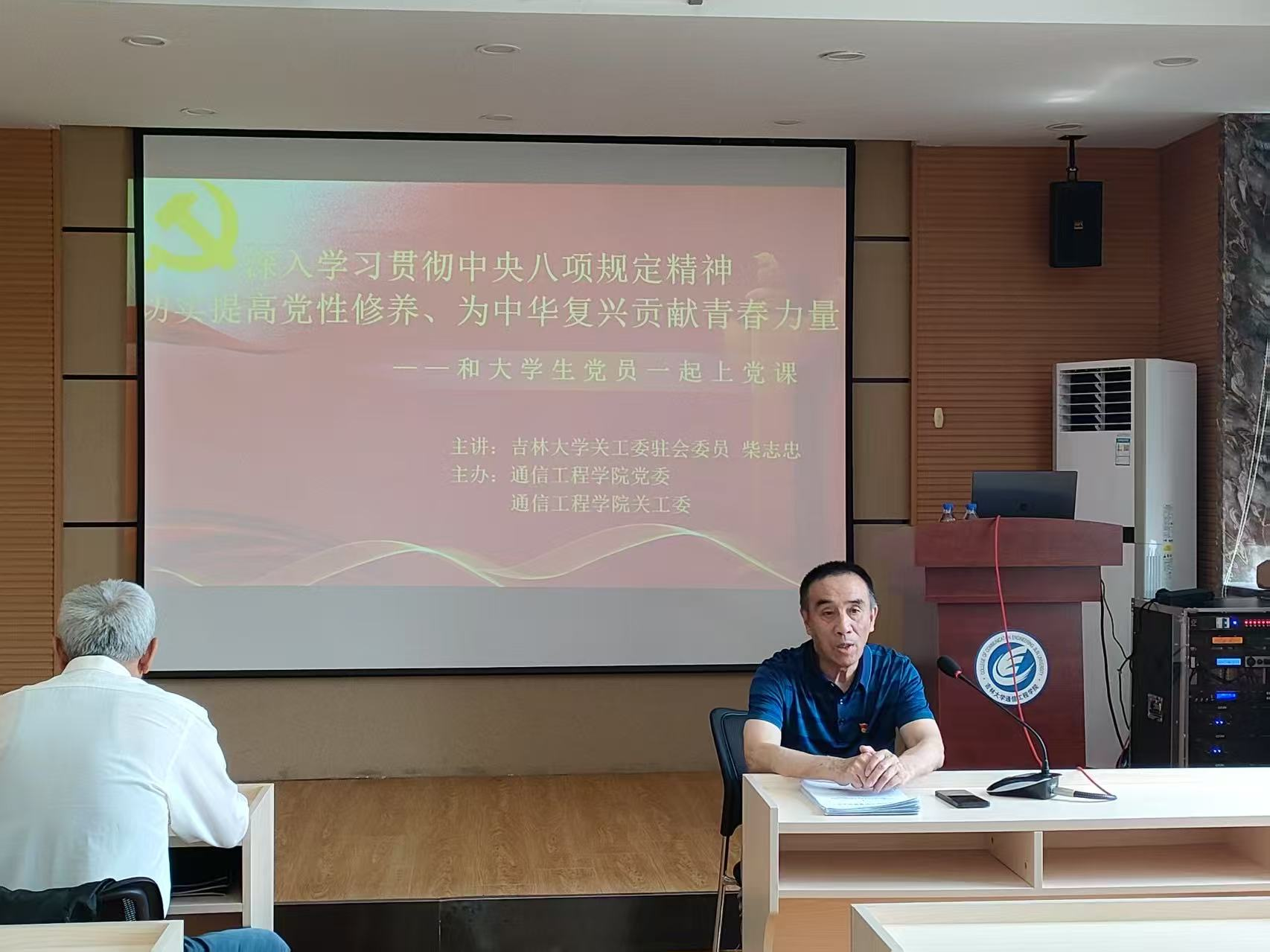 首先柴志忠老师,结合自身丰富的人生经历与深刻感悟,深入讲解了中央八项规定精神对党员修养以及民族复兴的重要意义。柴老师指出,党肩负着中华民族伟大复兴的历史使命,这就要求我们必须目标明确、战斗力充沛,不懈追求奋斗。我们党从西柏坡到天安门,中华民族从从站起来、富起来到强起来,党的战斗力与党风建设紧密相连。党风建设需正反两面同时发力、齐抓共管、警钟长鸣。他不仅给我们提供了一些从党风教育的反面案例,还以诗歌的形式深情回顾了党的百年光辉历程。他还以当年美帝悍然轰炸我驻南斯拉夫大使馆的惨痛经历,以及现如今,我们硬钢美帝的生动事例,展现了党为国家和人民做出的巨大贡献,以及当代大学生肩负的历史责任。最后,柴老师殷切希望同学们以毕业为新的起点,深入学习中央八项规定精神,以此指导自己的行为规范,接住实现中华民族伟大复兴的接力棒。