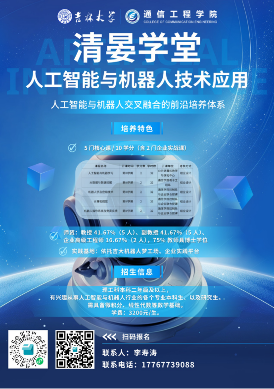 人工智能及机器人应用作为一门跨学科的综合性专业,围绕人工智能技术在机器人领域的应用开展教学,旨在培养学生运用人工智能技术实现在机器人设计、生产、制造等方面的智能应用,使他们具有在机器人领域的创新和技术突破能力。